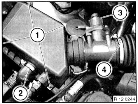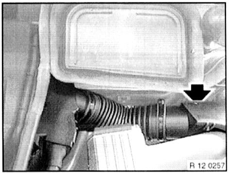 - Remove upper section of right suction filter housing with mass air flow sensor.