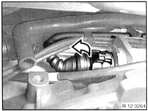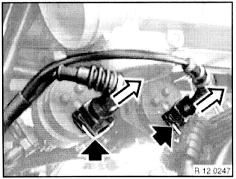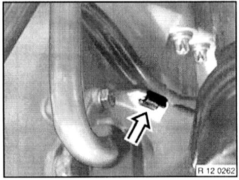- Unfasten plug connection on impulse sensor on crankshaft (flywheel) for DME of cylinder 7 - 12 (DME 2).