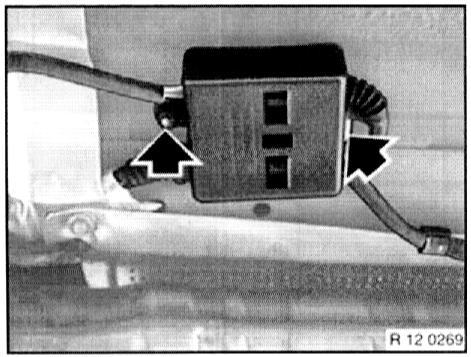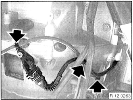 - Unfasten screws and remove cover of plug connections for left and right Lambda oxygen sensors. Mark (identify) plug connections and disconnect.