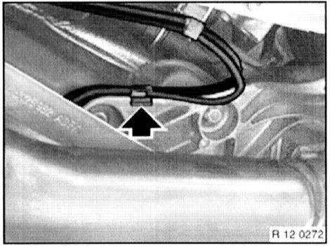 - Unclip wiring harnesses from left and right Lambda oxygen sensors on the heat shields.