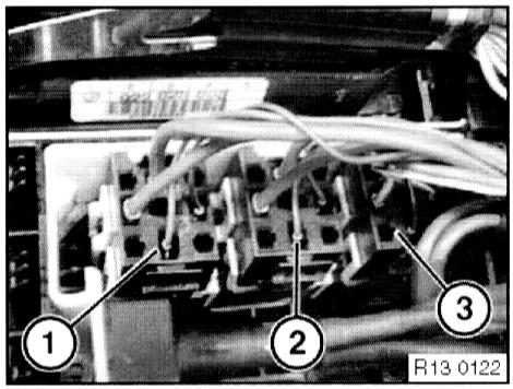 - Disconnect left plug connections (1 and 2).