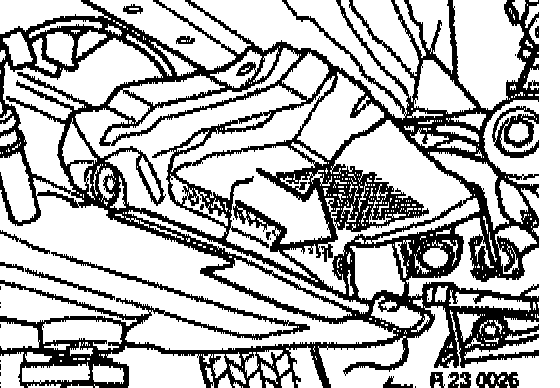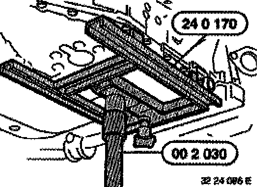 Fit special tool 23 3 030 between engine oil pan and front axle support.