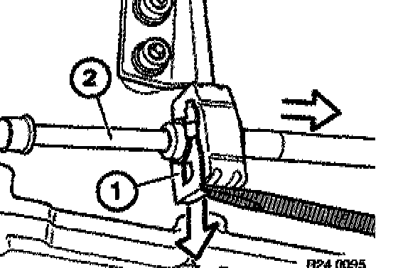 Brace clamping bush (1) and loosen nut (2).