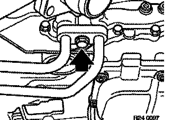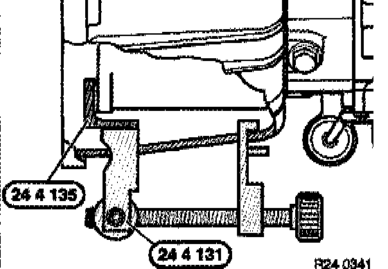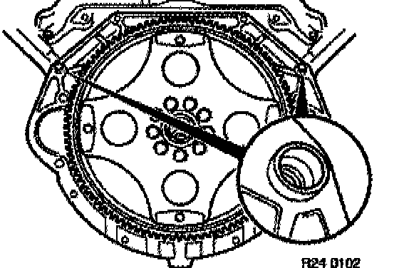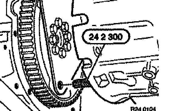 To do this, insert special tool 24 4 131 / 24 4 135 in opening of transmission housing and clamp torque converter in place.