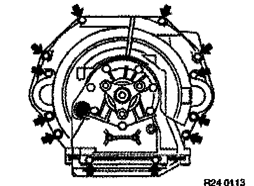 Unfasten 4 retaining screws for torque converter with special tool 24 1 110.