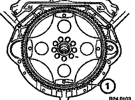 Bore (1) in drive plate must be accessible from aperture in oil pan.