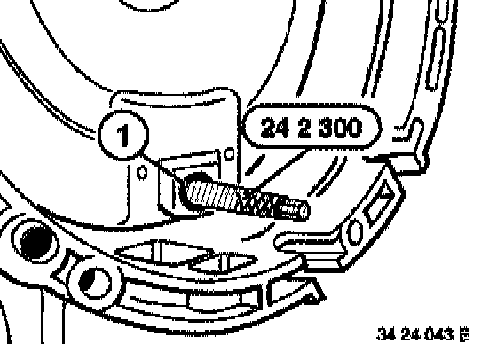 Screw special tool 24 2 300 into the threaded bore (1).