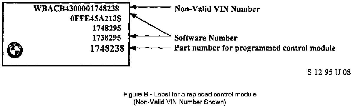 If you follow the steps for an automatic determination and the MoDiC display states "No substitute EPROM found for this control unit!" compare the BMW label located on the cover of the DME control module with those shown below and follow the directions indicated:Figure A - Follow the steps for a manual determination in the flow chart and enter the part numbers that appear on the label.