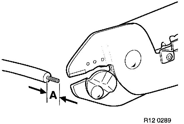 - Strip insulation off a 6 mm length (A) of the ignition lead with insulation stripping pliers: wire cross section of 1.5 mm square
