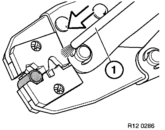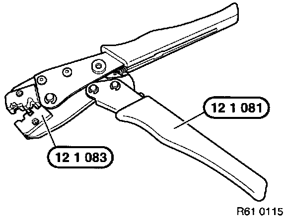 - Insert stripped wires (1) firmly home in adapter. Press handles on pliers firmly together. Pliers open.