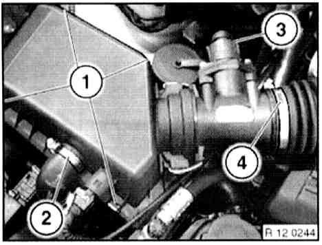 - Remove upper section of suction filter housing with mass air flow sensor.