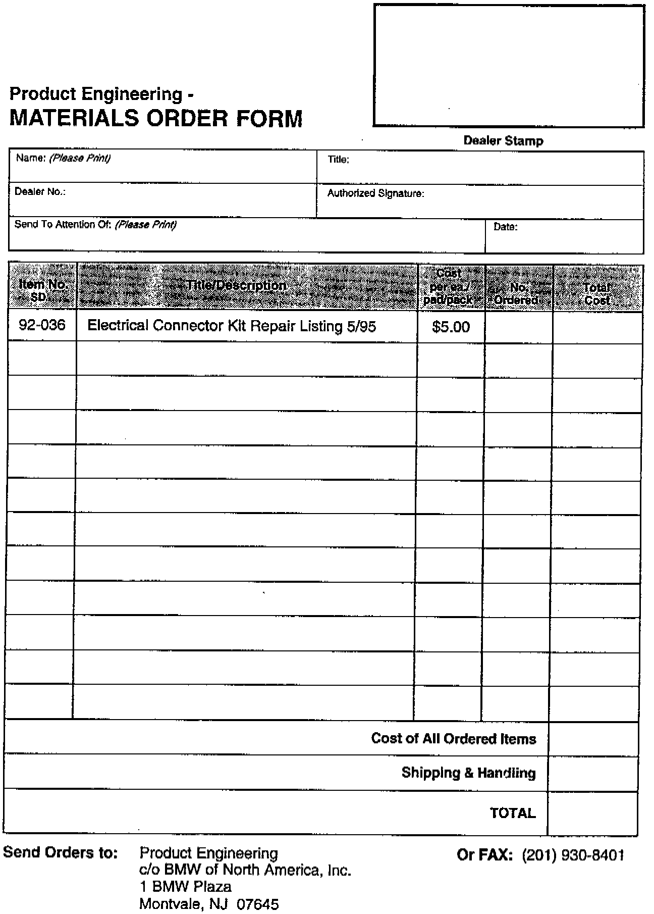 An updated Electrical Connector Kit Repair Listing is now available. One copy, together with this bulletin, will be sent to every BMW automotive dealer.