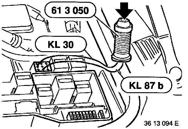 - Connect special tool 61 3 050 to terminal 87b and terminal 30.