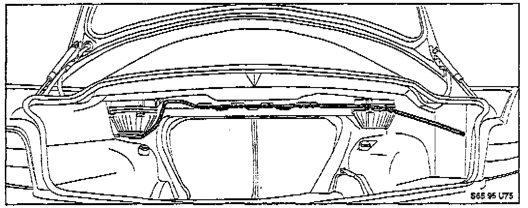 1. Remove the rear seat bottom cushion, both lateral trim panel cushions, left rear trim panel, spare tire cover with trunk floor carpet, tail light assembly covers, and molded trunk sidewall carpeting.