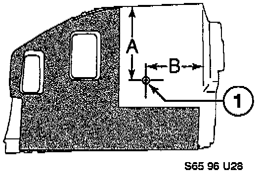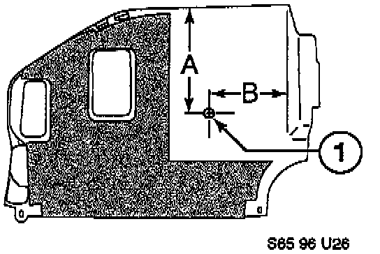 Locate and drill a 19 mm (3/4") diameter hole (1) in the trim panel as shown.