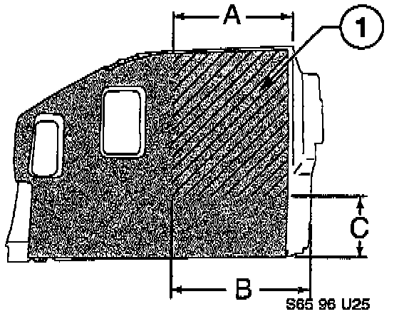 Remove the passenger side lower trim panel. Remove the insulation material (1) and any adhesive residue from the area shown in the illustration.