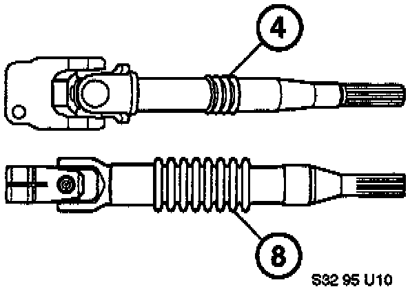 Checking steering spindleLock steering wheel in center position and raise the car on lift. Examine the lower steering spindle, which should be the 4-rib style.