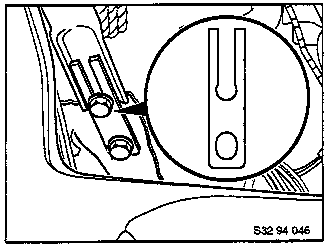 Some cars may have a bracket that differs from the one illustrated. If this type of bracket (two bolt holes with no slide area) is found, it must be replaced with part number 51 71 8 168 442.