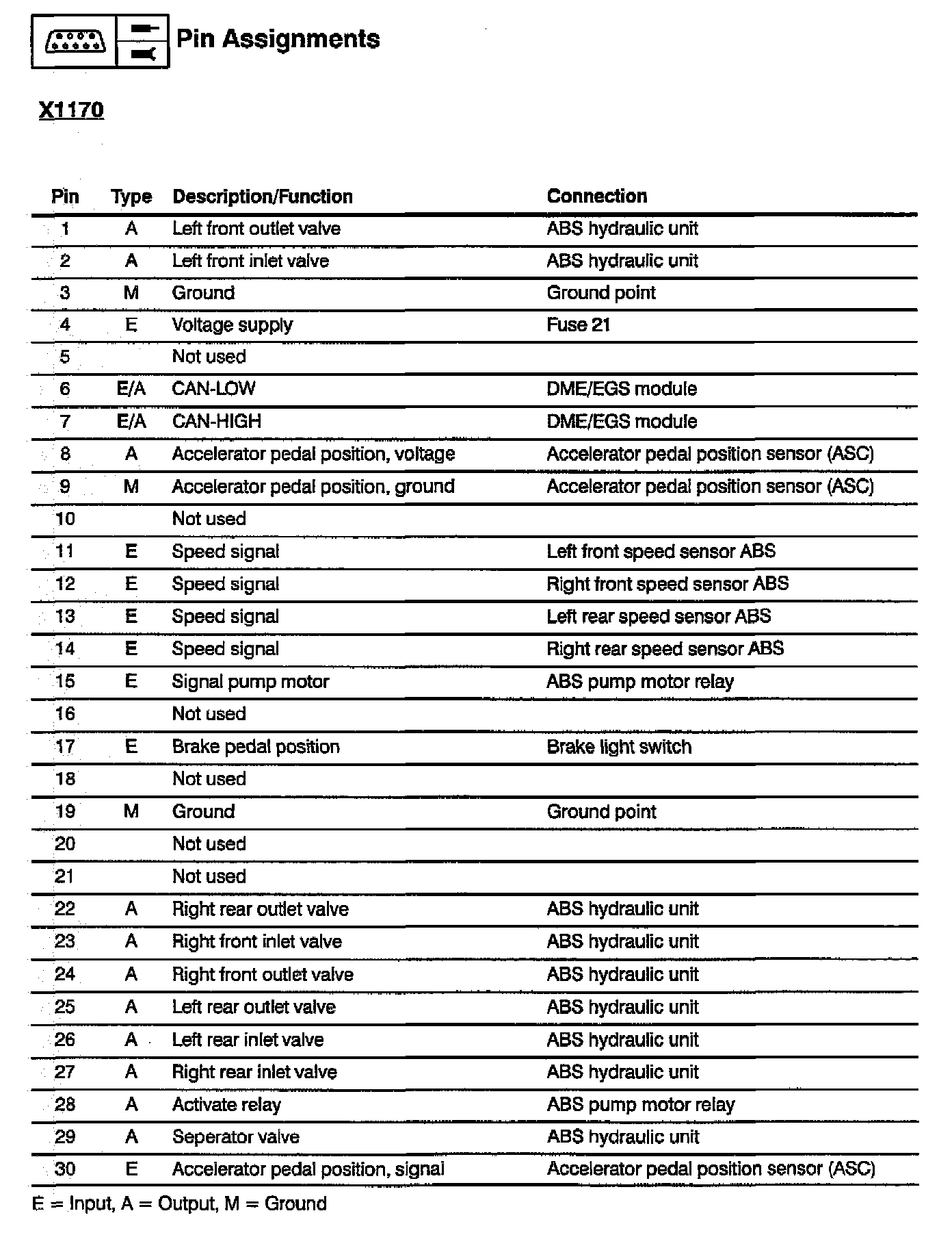Slip Control (ABS/ASC): Pin Assignments (Part 2 Of 2):