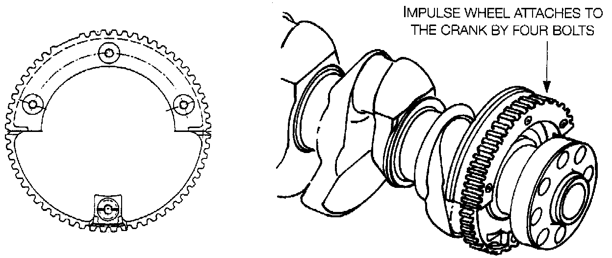 The engine speed/reference wheel is now bolted directly to the rear counter weight of the crankshaft.