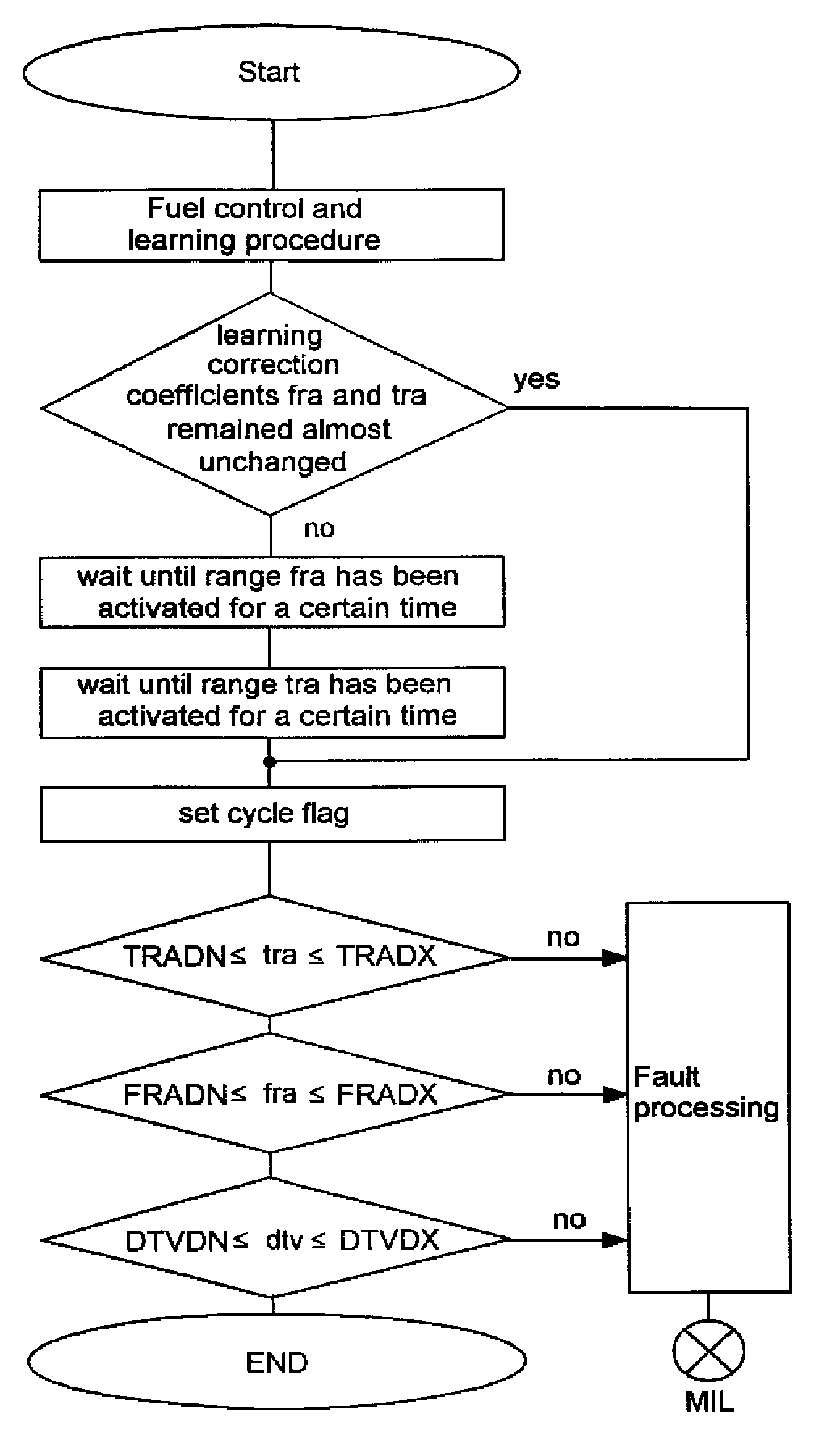 If the adaptive value is outside a plausible range then the MIL is illuminated and the fault is stored.