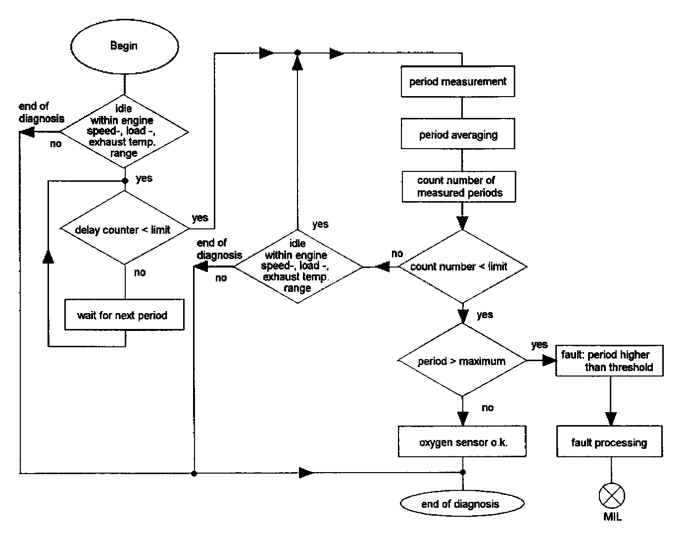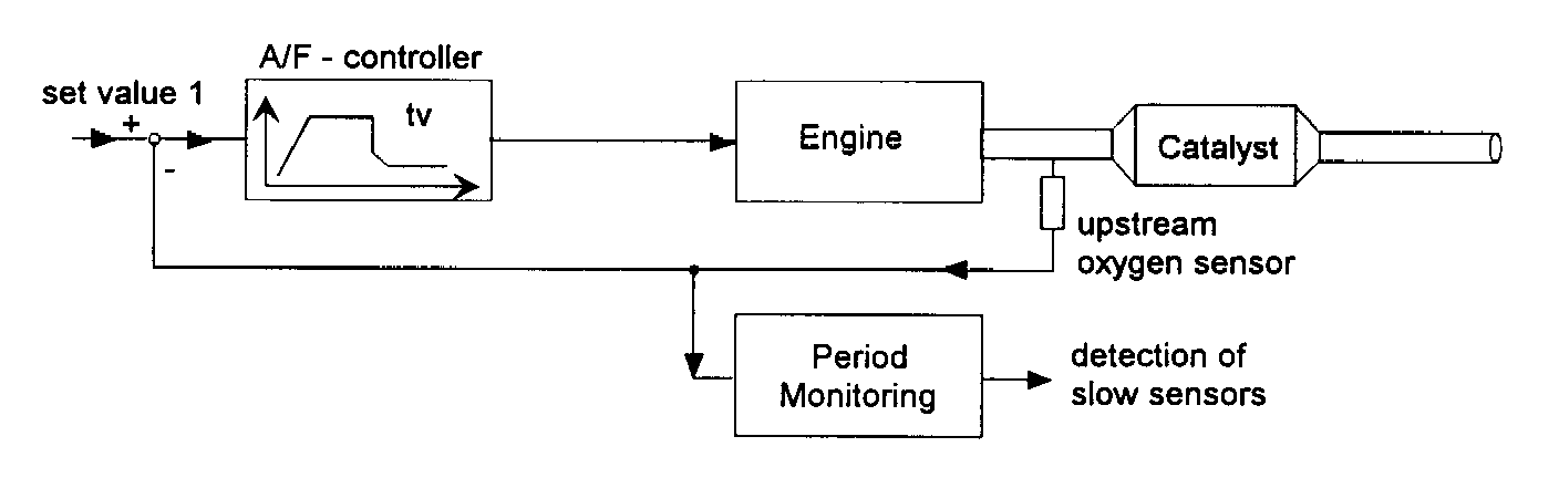 GENERAL DESCRIPTIONThe response rate of up the stream oxygen sensor is monitored by measuring the period of the lambda control oscillations.