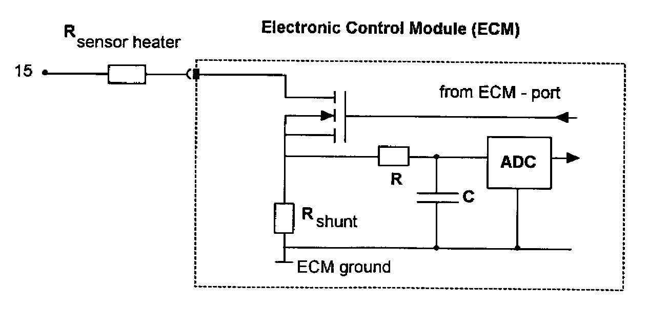 - one shunt for each sensor heater upstream and downstream of catalyst for current measurement