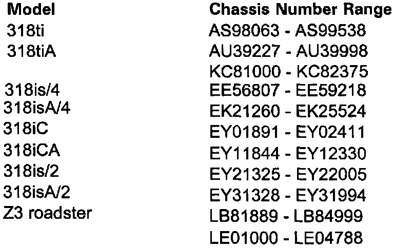This Recall involves E36 vehicles with M44 engines which were produced from 1/97 - 8197.