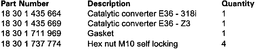 Refer to the E36 repair manual group 18 section 18 32 005 for complete instructions on replacing the catalytic converter.