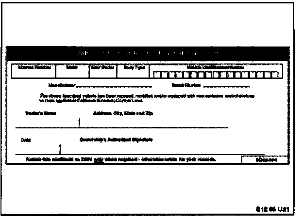 For California centers only it is required by the California Code of Regulations that an executed orange "Vehicle Emissions Recall - Proof of Correction" certificate (SD92-084, see illustration) be provided to each customer (for vehicles registered in the state of California) once the Recall on their vehicle has been completed.
