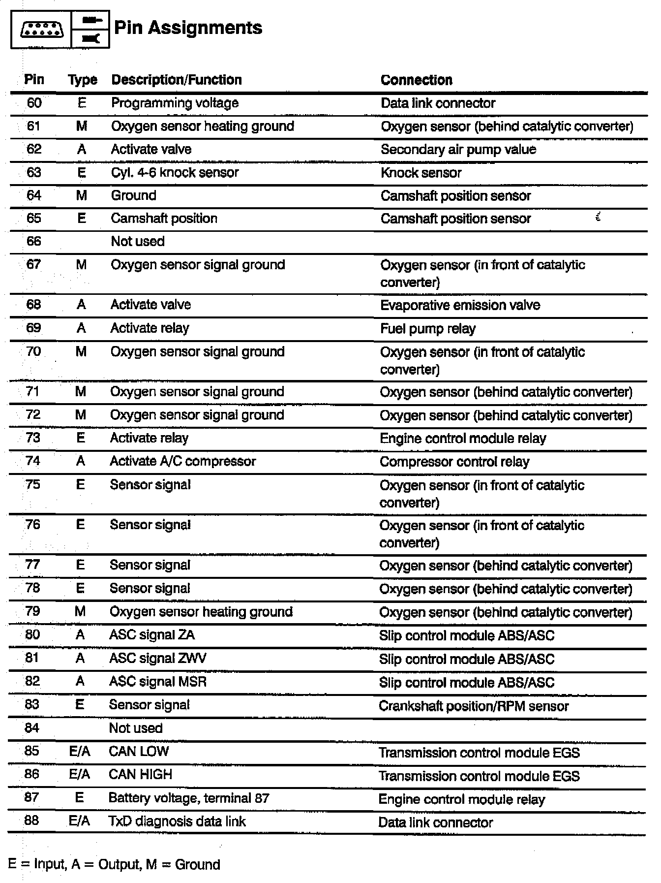 Engine Control System: Pin Assignments (Part 3 Of 3):