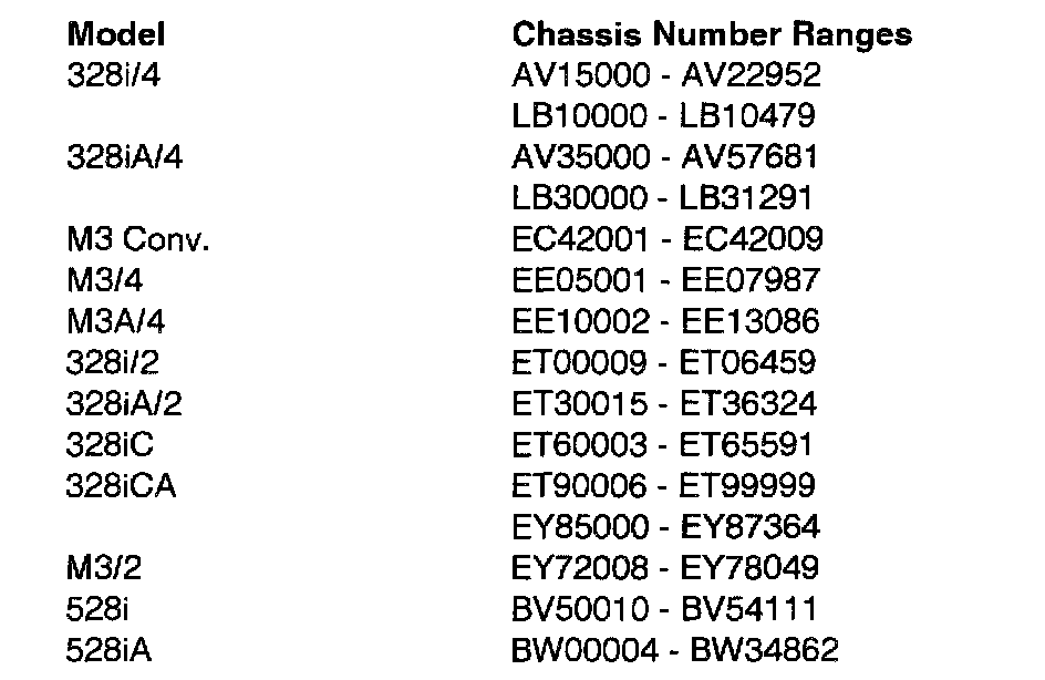 The Chassis Number Ranges listed in the illustration are only for informational purposes and are not to be considered as the only deciding factor.