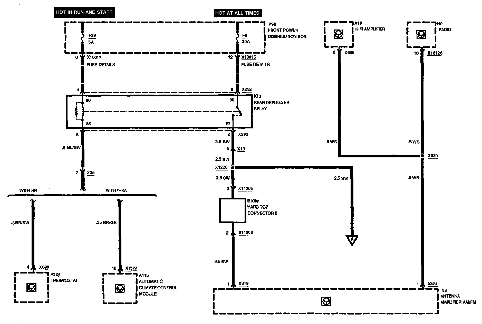 Rear Window Defogger/Antenna: Sub-System Diagrams: