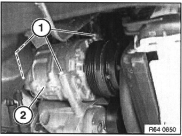 Release screws (1) and remove A/C compressor (2).