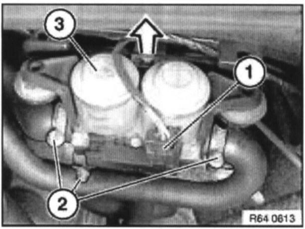 Pull water valve for heater (3) in direction of arrow out of rubber mounts.