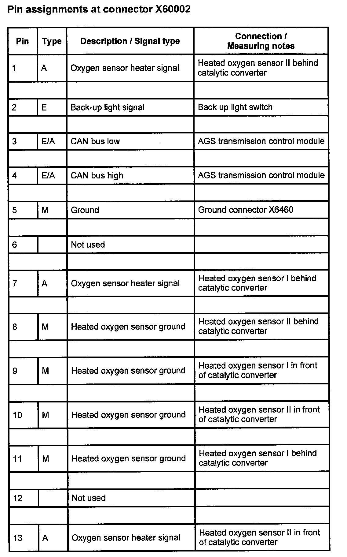Pin Assignments At Connector X60002 (part 1):