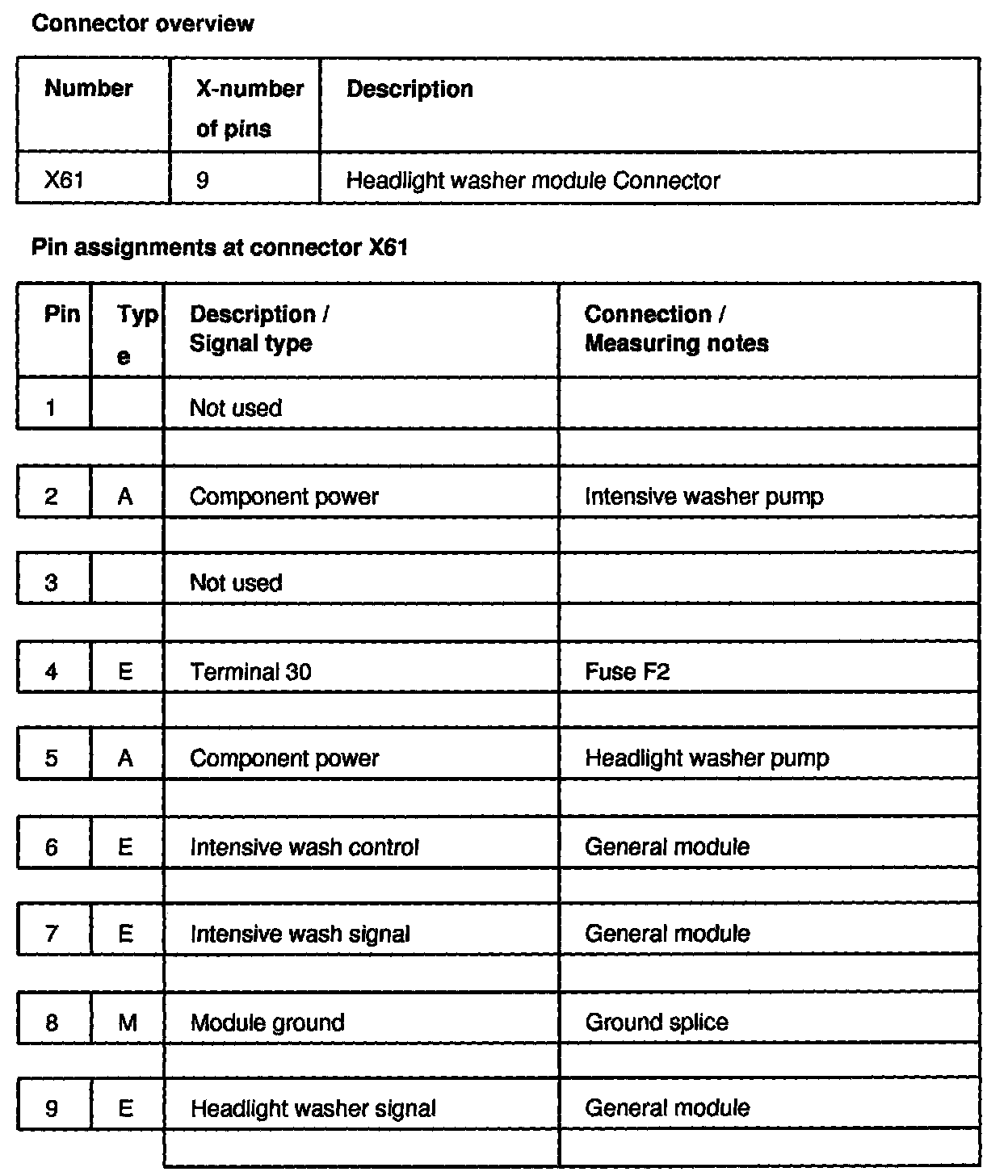 X61, Pin 1 - 9:
