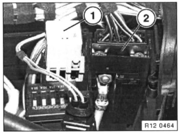 If the starter engine turns the engine when switched on but the engine fails to fire, check the engine fuses (2). If these fuses are defective, replace all fuses together with the bracket.