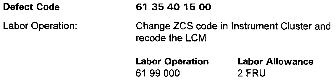 Update the ZCS code in the Instrument Cluster, then recode the LCM - do not replace any parts.