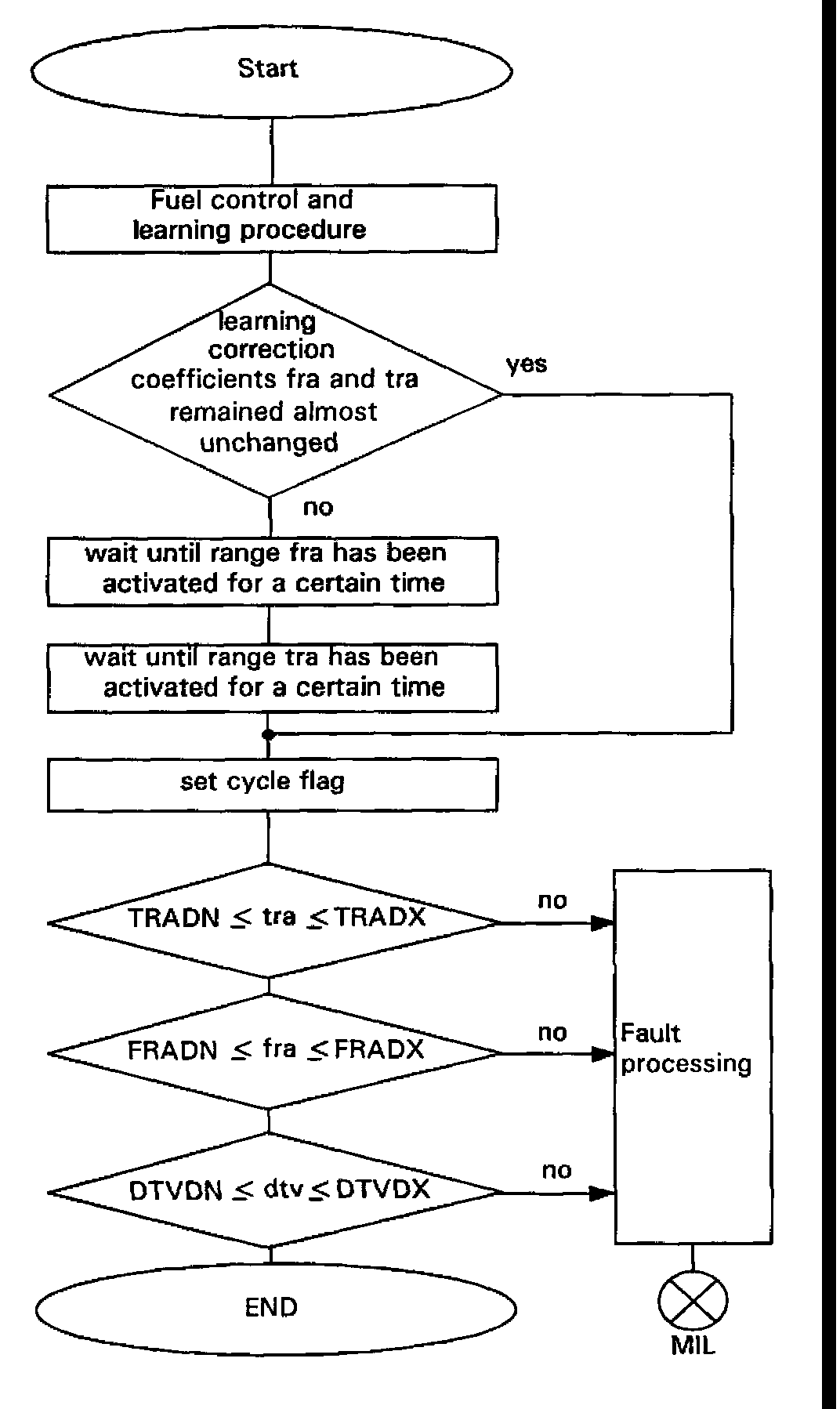 If the adaptive value is outside a plausible range, then the MIL is illuminated and the fault is stored.