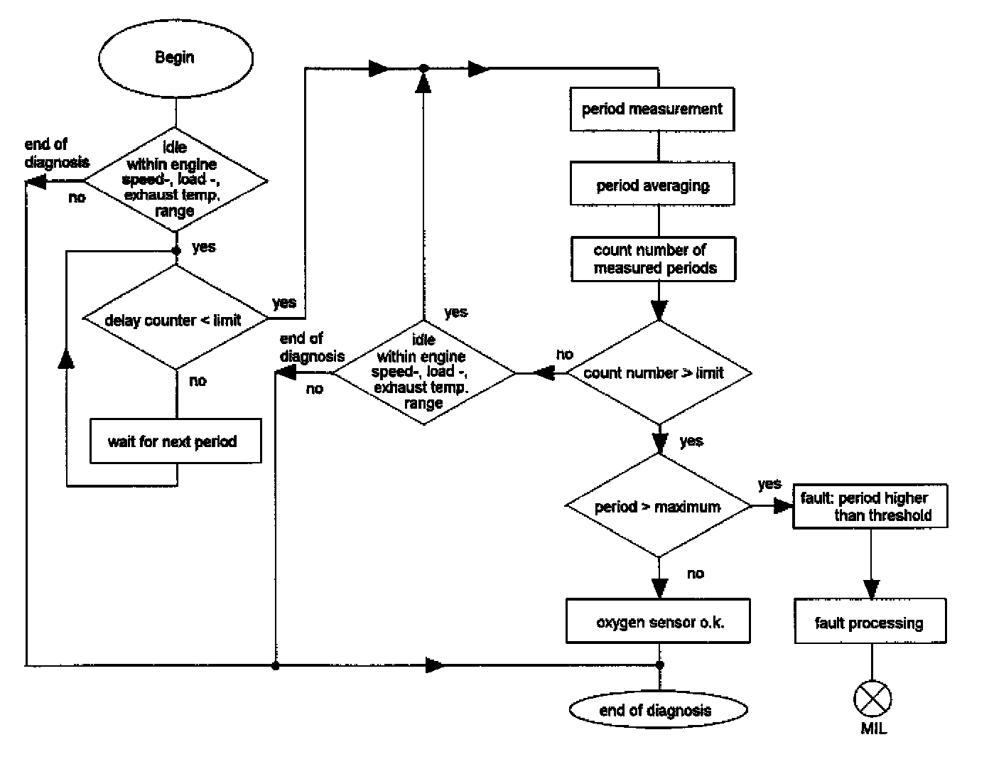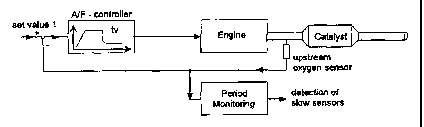 GENERAL DESCRIPTIONThe response rate of the up stream oxygen sensor is monitored by measuring the period of the lambda control oscillations.