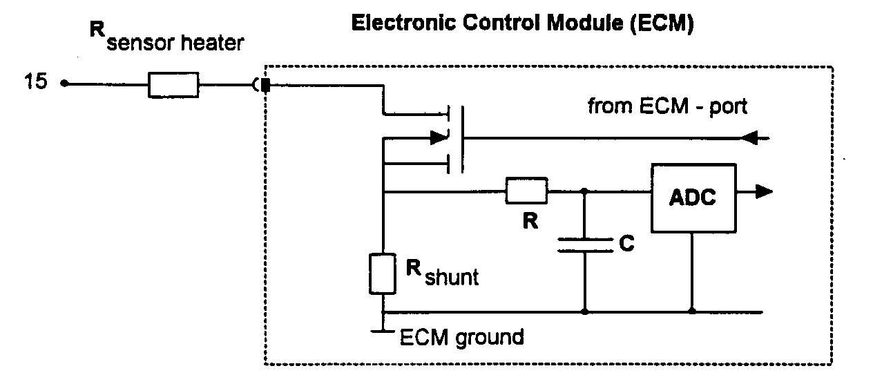 - one shunt for each sensor heater upstream and downstream of catalyst for current measurement