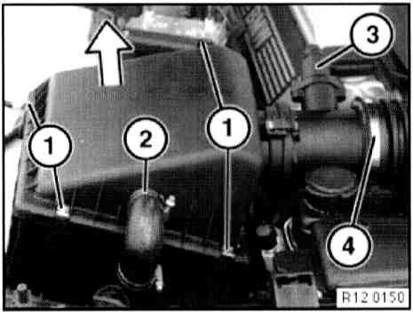 - Remove upper section of suction filter housing with mass air flow sensor.