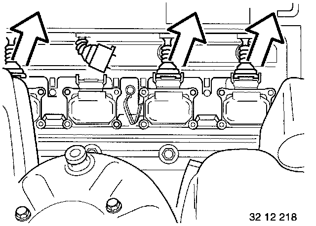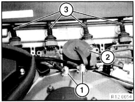 - Unfasten ignition coil connections (3).
