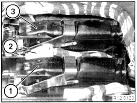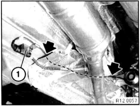 Installation Note: Note line routing of Lambda oxygen sensor (1) under the heat shield!