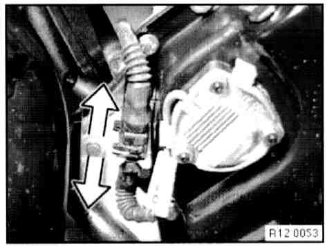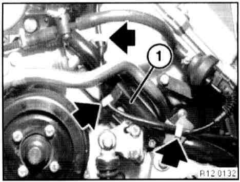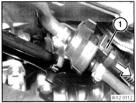 - Unclip lines on guide tube (1) for dipstick.