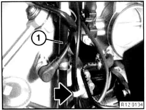 - Disconnect plug connection (1) on tank vent valve.