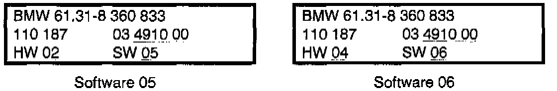 Modules with software version 06 and part number 61 31 8 360 833 are OK and should not be replaced for this complaint, modules with software version O6 or lower and part number 61 31 8 360 833 should be replaced with part number 61 31 8 368 993. *