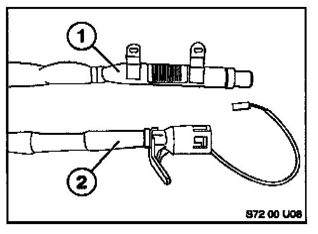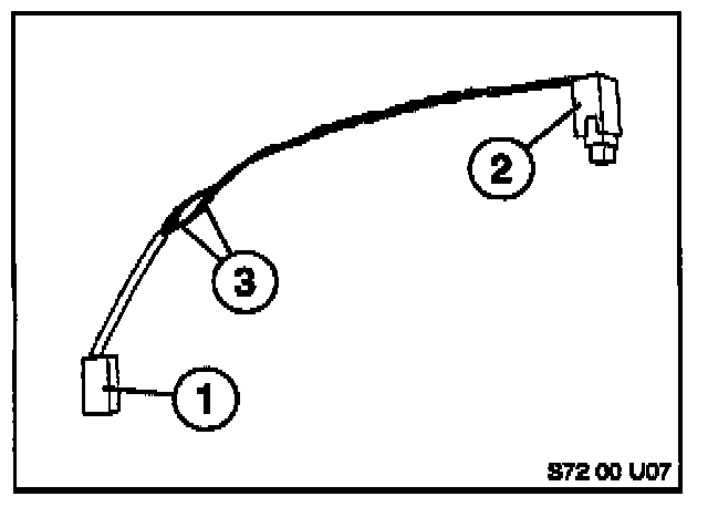 9. Connect the two parts of the modified harness by using crimping connectors (PN 61 13 8 353 746), and shrink tube insulations (PN 61 13 1 379 833) (# 3 on illustration S72 00 U07).