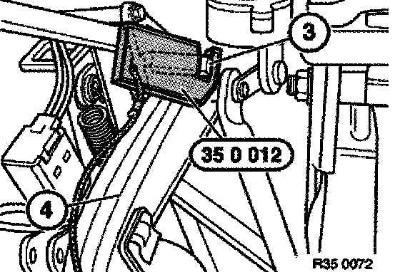 Attach special tool 35 0 010/012 to stop (3) on pedal block (4 brake pedal).